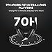 - Disfrute musical sin interrupciones: Sumérjase en su música favorita sin la ansiedad de pensar si se puede estar quedando sin batería, aun cuando se trate de un viaje largo. Una sola carga con ANC desactivado puede suministrarle hasta 70 horas de duración de la batería para que disfrute de su música sin interrupciones.