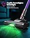 - 🧹 【Cepillo de Suelo en V Anti-Enredos & Iluminación LED】El aspiradora integra un cepillo en espiral en forma de V con peines guía, que evita eficazmente los enredos de pelo. La combinación de cerdas duras y suaves limpia profundamente las alfombras mientras protege los suelos. El cabezal flexible con luz LED verde gira 180° horizontalmente y 90° verticalmente, abordando sin esfuerzo áreas difíciles como bordes, esquinas y zonas oscuras, sin omitir nada.