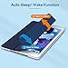 - Auto Sueño/Estela: La cubierta frontal de la funda protectora tiene una banda magnética incorporada. Cuando abra o cierre la funda de la tableta, el sensor magnético inteligente se activará automáticamente o pondrá su iPad en reposo. Esto puede reducir el consumo de energía de la batería y extender el tiempo de espera de su tableta.