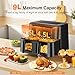 9L Freidora de Aire con Doble Cesta e Ventana, XL Dual Air Fryer sin Aceite, 2 Cajones, 9 en 1 Preajustes de Cocción, Pantalla Táctil, Funciones Inteligentes&Temporizador, Cocción Rápida y Saludable