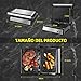 - 【Gran superficie de cocinado】La apertura de 180° permite usar de forma completa y simultánea ambas placas con un calentamiento uniforme, por lo que se pueden cocinar alimentos diferentes de forma independiente y al mismo tiempo sin que se mezclen los sabores. Además el diseño de las bisagras permite que se prensen sándwiches o paninis de distintos grosores. Medidas de las placas: 27cm x 17cm.
