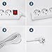 - Energía a todas las distancias: Las regletas son de color blanco y disponen de 6 tomas de corriente de CA con conexión a tierra para que la electricidad llegue a todos sus dispositivos de forma segura.