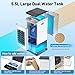 - ❄️⛄【Tanque de Agua Grande de 5,5L】-- Con un tanque de agua doble de gran capacidad de 5,5 l, el tanque de agua superior es fácil de llenar con agua y el tanque de agua inferior está equipado con orificios de drenaje para facilitar la limpieza. La tasa de viento máxima en la salida de aire es de 8 m/s, el tiempo de uso más largo puede ser de hasta 16 horas cuando el tanque de agua está lleno de agua. NOTA: No se generará freón ni aire de escape.