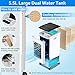 - 🧊【Potente y duradero】: Gran salida de aire, la velocidad máxima del viento es de 8 m/s, que es el doble que la de los ventiladores laterales estrechos. El gran angular de 60 grados activa el flujo de aire en un amplio rango, y cuando se usa con la caja de cristal de hielo, el aire frío llega a la esquina de la habitación. Tanque de agua grande de 5.5L de capacidad, cuando está lleno de agua, la duración de la batería puede durar hasta 16 horas.