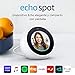 - El Echo Spot está diseñado para adaptarse a cualquier habitación de tu hogar. Usa el reconocimiento de voz de largo alcance para ver los Resúmenes de noticias en vídeo, consultar la previsión del tiempo, revisar las listas de tareas y de la compra, y mucho más. Todo sin usar las manos. Solo tienes que pedirlo.