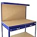 Banco de Trabajo Azul Metal 155x120x60cm+Tablero de Clavijas+Cajón Capacidad Peso 200kg Mesa de Trabajo Metálica Metálico Almacenamiento Herramientas Taller Garaje Bricolaje Mazo+40 Ganchos Gratis