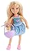 - La hermana pequeña de Barbie luce una divertida falda azul de lunares blancos y unos zapatos rosas