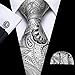 Barry.Wang Juego de corbatas para hombre, diseño de cachemira, de seda, cuadrados, para bodas y fiestas, Cachemira gris, Taille unique