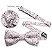 - 🎀Tamaño: pajarita ajustable preatada de talla única (bandas de 11.8 pulgadas se extienden hasta aproximadamente 20.5 pulgadas, y te sentirás cómodo incluso si lo llevas durante largas horas). Tamaño aproximado del corbatín: 3.9 pulgadas de largo (9.9 cm de largo); 2 pulgadas de ancho (5.08 cm de ancho); el tamaño del pañuelo es de 8.6 x 8.6 pulgadas (22 x 22 cm)