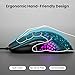 - 【Super Ligero y Protatil】:Este ratón para juegos solo pesa 60 g, lo que equivale al peso de un bolígrafo. El diseño único del orificio de ventilación no solo reduce el peso del mouse, sino que también lo hace más transpirable durante el uso. No se preocupe por la sudoración de las palmas de las manos por un uso prolongado. Y los orificios de panal transpirables hacen que el efecto de iluminación RGB se vea más refrescante.