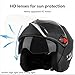 - ت Lentes duales mejoradas: experimente una conducción clara y protegida con nuestros cascos de motocicleta de cara abierta que cuentan con protección de lentes duales, función antivaho del espejo exterior, espejos retráctiles y gafas de protección solar para aislar las luces altas y reducir el deslumbramiento.