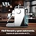 - Fácil llenado y gran autonomía; depósito de agua extraíble de 1,7 L que permite realizar gran cantidad de cafés sin tener que rellenar el depósito