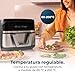 - 6 modos preconfigurados que establecen el tiempo y la temperatura necesarios para cocinar distintos tipos de alimentos; dispone de termostato para regular la temperatura desde 80 ºC hasta 200 ºC; tiempo ajustable de 0 a 60 minutos; con temperatura dual en cada uno de los cestillos
