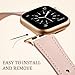 - Conector seguro: la correa para iwatch está equipada con orejetas en ambos extremos, que se bloquean en la interfaz de la correa del reloj de forma precisa y segura. Fácil de instalar o quitar. Y la elegante hebilla de oro rosa sujeta su reloj de forma segura en su lugar