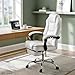 CLP Silla de Oficina Ergonómica con Reposapiés Castle, Silla de Escritorio Acolchada de Cuero Sintético, Giratoria y Ajustable en Altura, Color:Blanco