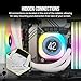 - Conexiones ocultas para conseguir un aspecto impecable: Un diseño de conexión oculta desplaza todas las conexiones al extremo del radiador, lo que ofrece una vista sin distracciones de la impresionante pantalla LCD y la tapa de la bomba de 24 LED RGB. Diseñe un equipo depurado y elegante que muestre su estilo personal con facilidad.