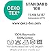 - Tejido certificado OEKO-TEX STANDARD 100, probado según criterios estrictos de control de sustancias nocivas.