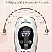- 😄 9 NIVELES DE INTENSIDAD: SEGURO QUE ENCUENTRAS EL MEJOR NIVEL PARA TU PIEL: Esté depiladora láser profesional IPL tiene 9 niveles de energía ajustables para adaptarse a diferentes sensibilidades de la piel, brindándole la experiencia de depilación más personalizada y efectiva. Puedes elegir el nivel que mejor se adapte a tu tono de piel o color de pelo sin preocuparte de que demasiada energía te cause molestias o que la energía insuficiente te impida conseguir un buen efecto de depilación.