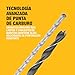 - TECNOLOGÍA AVANZADA DE PUNTA DE CARBURO: Las brocas de mampostería están equipadas con puntas de carburo duraderas, lo que garantiza orificios más limpios y concéntricos mientras mantiene altas velocidades de perforación constantes. La mayor longevidad y el menor desgaste de la broca los hacen adecuados para aplicaciones exigentes.