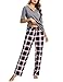 Doaraha Pijama a Cuadros para Mujer Camiseta y Pantalones Pijamas Manga Larga Celosía Ropa de Dormir de Algodón Manga Corta con Bolsillo Cuello de Muesca 2 Piezas (A#1 Gris (pantalón Largo), M)