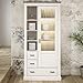 duehome Vitrina 3 Cajones + 1 Puerta con Luces Led, Mueble Auxiliar de Salon o Comedor, Modelo Irma, Acabado en Andersen Pino y Gris, Medidas: 204 cm (Alto) x 99 cm (Largo) x 42 cm (Fondo)