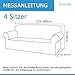 - Ajuste perfecto: esta gruesa funda de sofá para el salón está hecha de poliéster y elastano, que ofrece una excelente elasticidad. Por lo tanto, es fácil de estirar y adecuada para la mayoría de tipos de sofás. Tamaño: 1 plaza (80-120 cm), 2 plazas (145-178 cm), 3 plazas (185-235 cm), 4 plazas (235 plazas). 300 cm). En las fotos encontrarás una lista de medidas incluyendo profundidad, longitud y altura.