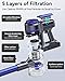 - 🍀【Sistema de filtrado eficaz y cómodo】 El aspirador sin cable cuenta con un sistema de filtrado HEPA lavable y ciclón de 5 etapas que filtra el 99,97% hasta 0,3 µm de polvo. Incorpora un gran cubo de basura de 1,2 litros con un exclusivo diseño de pulsador que limpia con sólo pulsar un botón sin ensuciarse las manos. No es necesario vaciar la papelera varias veces durante la limpieza.