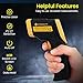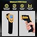 - Apuntación Más Rápido: El diseño de láser le eleva la precisión de apuntar el lugar que desea medir; No hace falta adivinar a ciegas donde está apuntando el termómetro