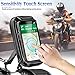 - 【PANTALLA TáCTIL DE ALTA SENSIBILIDAD】La universal soporte moto movil está hecha de material de TPU de 0,3 mm de alta calidad, lo que aumenta la sensibilidad de la pantalla táctil de la sujeción movil moto hasta un 95%. Este diseño puede cubrir completamente el teléfono y evitar que se caiga. No necesita abrir la bolsa para operar fácilmente las funciones del móvil, incluidas las llamadas telefónicas, navegación GPS, video, etc. ( No se puede usar la función de desbloqueo de huellas dactilares)