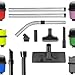 - El kit incluye: 2 tubos de extensión de cromo, 1 boquilla cromo mango con polvo de control, ventosa, largo manguera 1,8 Metro, 1 cepillo redondo, 1 adaptador, 1 boquilla, 1 recoge residuos/herramienta escalera con cepillo móvil, 1 herramienta amplia con cepillos retráctiles para el alfombra y las herramientas para las superficies de madera.