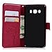Funda J5 2016, Funda Libro de Cuero Impresión de Árbol, Flip Cover para Samsung Galaxy J5 2016(5.2 Pulgadas), Wallet Case, Ranuras para Tarjetas y Billete - Rosa roja