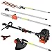 - Incluye los siguientes accesorios: cortasetos, motosierra de poda, cortasetos con cuchilla de 3 dientes, desbrozadora con doble hilo, extensión 1m, correa de transporte para trabajar cómodamente.