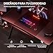 - 【Diseño Ergonómic】 prestamos atención a su comodidad: la curva del diseño del escritorio ordenador no toca el abdomen y los brazos se adaptan mejor a la estación de juegos, lo que le permite no cansarse durante largas sesiones sentado. Ponemos gran atención a los detalles de seguridad, utilizando esquinas redondeadas para mayor comodidad y tranquilidad, despertando instantáneamente tu entusiasmo por el juego