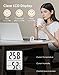 - ➤ Pantalla LCD clara y Indicación sonriente: la pantalla grande muestra fuentes grandes y en negrita, y la temperatura y la humedad se muestran claramente en la pantalla, lo que le permite ver los datos con mayor claridad. El medidor de humedad muestra el estado del clima de la habitación en tres símbolos con una cara neutra, sonriente y triste, si los valores están dentro del rango recomendado o si es necesario actuar.