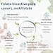 - FORMA BIODISPONIBLE: el L-metilfolato puro (L-MTHF) es la forma de ácido fólico totalmente metilada, altamente absorbible, lista para que el cuerpo la utilice y que ofrece niveles en sangre 1,8 veces más altos que el ácido fólico estándar.