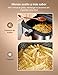 - Menos Aceite, Más Saludable y Más Rápido: Con la freidora de aire puede disfrutar de alimentos con un 85% menos de grasa que los alimentos fritos tradicionales y una cocción un 50% más rápida que los hornos. La tecnología de circulación de aire caliente de 360° hace que la freidora se caliente rápidamente en poco tiempo. La tecnología de sensor NTC líder puede ajustar automáticamente las temperaturas para mantener las fluctuaciones por debajo de 5 ℃ para comidas cocinadas de manera uniforme.