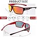 JIM HALO Gafas de Sol Polarizadas para Hombres, Gafas de Sol Envolventes Sprot para Ciclismo, Pesca, Conducción Negro Rojo/Rojo Espejo