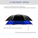 - Paraguas inverso de tamaño suficientemente grande: arco de la sombrilla de 62 pulgadas, diámetro de 53 pulgadas y mayor que otros paraguas invertidos. Es el refugio definitivo para cualquier clima y caben tanto tú como tu ser querido cómodamente.