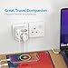 - Adaptador de viaje 6 en 1 UK: 1 toma Schuko, 1 toma europea, 2 puertos USB-A y 2 puertos USB-C te permiten cargar 6 dispositivos simultáneamente. Potencia máxima: 3680W (máx. 16A).