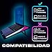 - 🌈 CÓMODOS CONTROLES + ELEGANTE ILUMINACIÓN RGB: Usa los tres botones frontales para controlar mejor tu base de refrigeración. Simplemente pulsa ON para iniciarla y selecciona tu velocidad preferida pulsando SPEED. Utiliza el botón LED para personalizar las luces frontales y laterales, pudiendo elegir entre 3 colores disponibles. Puedes mantener pulsado el mismo botón para desactivarlas completamente si prefieres un aspecto más discreto.