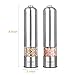 KZGRIT Molinillo de Sal y Pimienta Eléctrico, Batería Funcionado, Cuchilla de Molienda de Cerámica, Molino Acero Inoxidable Automático con Luz LED y Tosquedad Ajustable(Juego de 2, Plata)