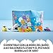 - Tu pequeño explorador disfrutará con el tobogán acuático y los animales marinos de juguete incluidos: una ballena adulta y un ballenato, un pez tropical y una bonita tortuga en su hábitat natural de corales