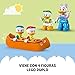 - El juego educativo para niños y niñas de 2 años en adelante incluye una canoa, una caravana de juguete manejable y una pequeña carpa, además de una hoguera, una cascada y un puente para construir con ladrillos