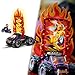 - Los peques activarán las motos acrobáticas con la rueda de inercia y las lanzarán a través del muro con llamas para recorrer el rizo de serpiente mordedora y encender el rizo de fuego