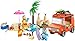 - Accesorios de playa para el juego de rol: Un castillo de arena, una cola de sirenita hecha de arena (para una minifigura), tablas de surf, una tumbona reclinable, una sombrilla, una palmera, un cangrejo, un helado, gafas de sol y protector solar