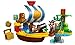 - Cuenta con aparejo, vela, timón, torre vigía, ladrillos DUPLO decorados al estilo pirata y un cañón que dispara de verdad.