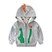 LitBud Niños Sudaderas con capucha para niño Dinosaurio de dibujos animados Cocodrilo Navidad Acción de gracias Zipper Packaway Chaqueta Otoño Capa Gris Tamaño 2-3 Años 3T