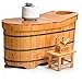 LOHOX Fumigación Barril de Madera, Bañera Sauna Barril Madera, Bañera Baño con Tapa Taburete Interior Extraíble y Diseño de Respaldo Aro de Cubo Espesor de la Hoja 2.5 CM (1-1.6M)