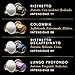 - POTENTE, CON CARÁCTER, REDONDO - Ristretto 11 aporta una complejidad fresca y especiada, inspirada en los mercados de Sumatra. SOFISTICADO, EXTREMADO, MÍSTICO - Colombia 8 seduce con su suave y dulce mezcla de notas cítricas, ofreciendo un toque final picante y elegantemente aterciopelado. INTENSO, ROBUSTO, VIVAZ - Ristretto Decaff 11 ofrece un café con toques de almendras tostadas y dulce de mazapán. INTENSO, FRAGANTE, SEDUCTOR - Lungo Profondo 8 ofrece una aventura tostada y afrutada con un retrogusto memorable.