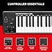 - producto 1: Control total - Fader de volumen, botones de transporte y direccionales para facilitar el control de su software, además de ruedas de modulación y afinación diseñadas ergonómicamente, botones de subida y bajada de octava y entrada de pedal de sustain